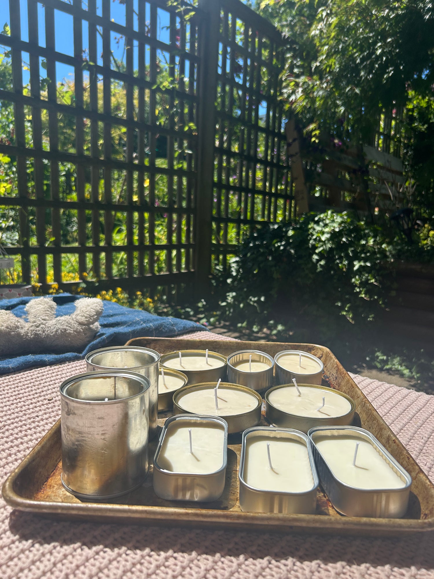 every custom order is exactly that; custom. the price range vary from order to order, however we work with any budget! don't be afraid to reach out. the process is complicated to explain, but easy to carry out. reach out to us with your idea, what kind of scent or vibe you're looking for with the candles, and we'll go from there. afterwards, we can discuss the vessel you'd like, whether it be our recycled fish tins, our tin cans our original scents are in, or if you'd like something different, we can talk about that as well! connected with the vessels is sizing. Prices will vary depending on the amount of candle you'd like, but our fish tin scents come in 4/5oz, and our original tins come in 4 and 8oz variaties. want more than that? we can figure that out. second, we'll talk about the labelling. we have stock options where the text can be changed, but for a small extra fee, we can create a custom label for your custom candle. whether it's colourful or black and white, we can make just about anything work. lastly, we'll talk about packaging. are these candles a gift? a surprise? let us know and we can organize a special packaging. if not, we'll just send them with the labels in our usual shipping box with a printed invoice. (if you would prefer only an emailed invoice, tell us!)