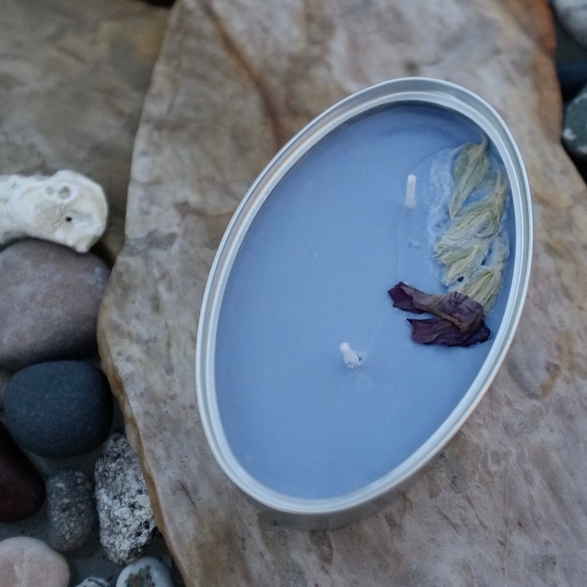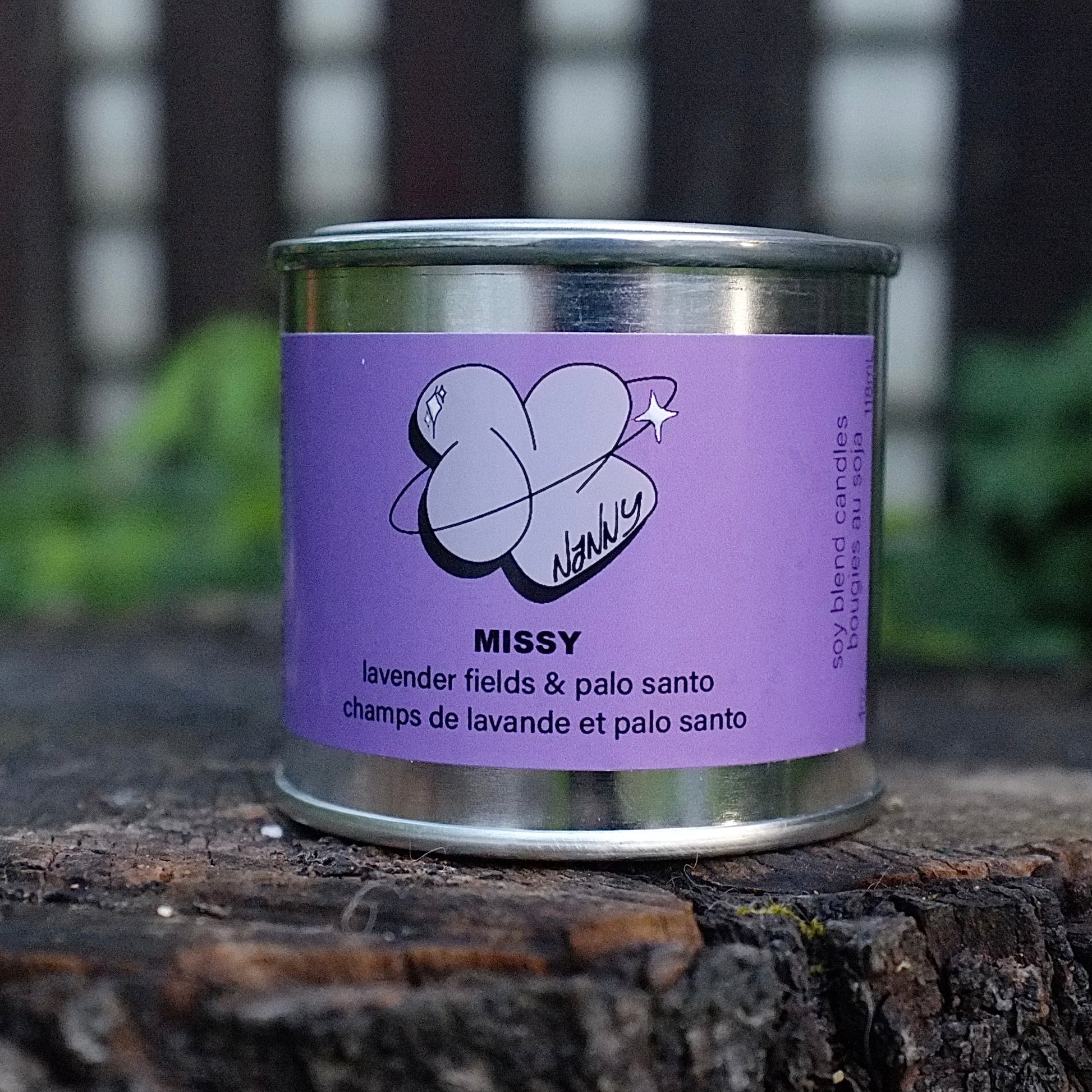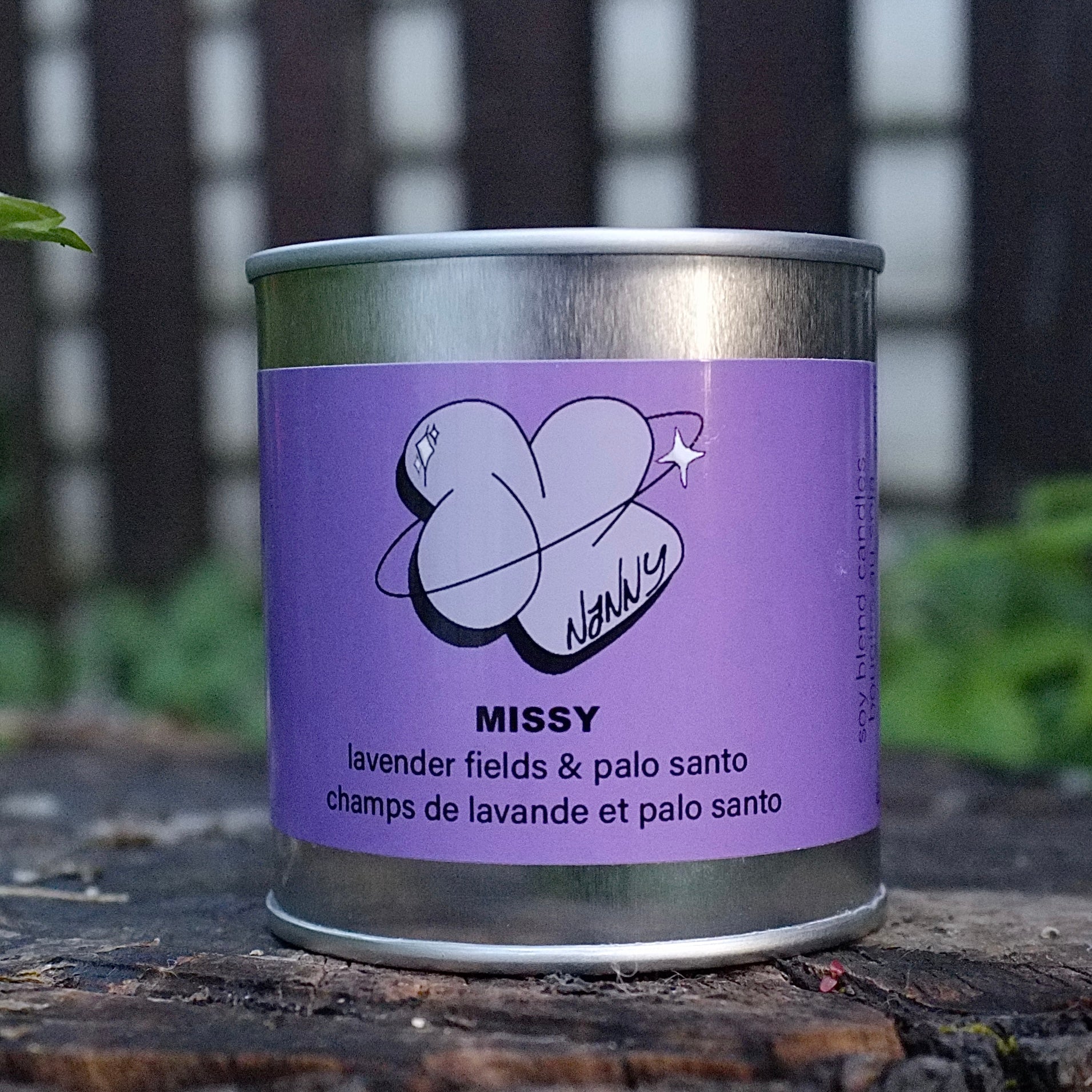 the lightest candle of the collection. soft lavender fields, palo santo, and linen combine to make this lavender-coloured candle. inspired by nanny's best friend & dog. calming and relaxing. light purple coloured wax.